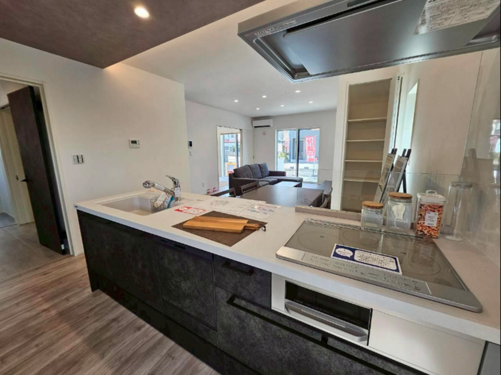 - 側溝、システムキッチン、食器洗浄乾燥機、IHクッキングヒーター、オール電化、シャンプードレッサー、洗浄便座、浴室乾燥機、追い焚き、複層ガラス、ウォークインクローゼット、モニタ付インターホン、駐車場2台分、エコキュート、トイレ2箇所、バリアフリー、日当たり良好、外壁サイディング、天井高2.5m以上、隣接建物距離2m以上