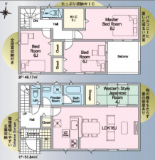 - システムキッチン、カウンターキッチン、IHクッキングヒーター、オール電化、シャンプードレッサー、洗浄便座、複層ガラス、モニタ付インターホン、駐車場3台分、床下収納、エコキュート、トイレ2箇所