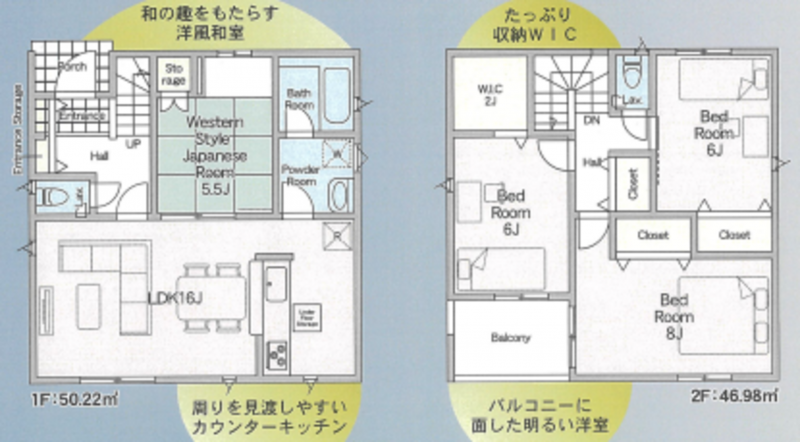- システムキッチン、カウンターキッチン、IHクッキングヒーター、オール電化、シャンプードレッサー、洗浄便座、浴室乾燥機、複層ガラス、ウォークインクローゼット、モニタ付インターホン、駐車場3台分、床下収納、エコキュート、トイレ2箇所