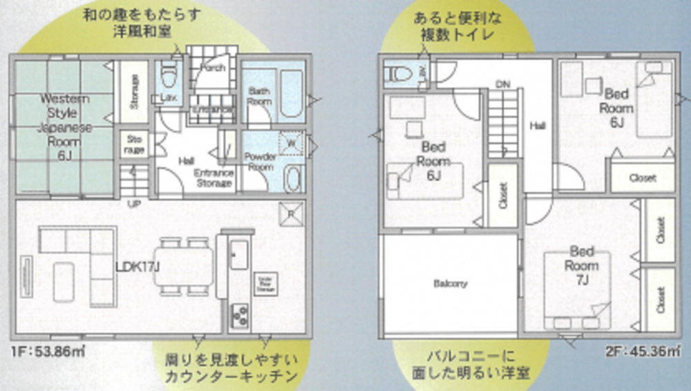 - システムキッチン、カウンターキッチン、IHクッキングヒーター、オール電化、シャンプードレッサー、洗浄便座、浴室乾燥機、複層ガラス、ウォークインクローゼット、モニタ付インターホン、駐車場3台分、床下収納、エコキュート、トイレ2箇所