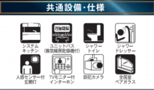 システムキッチン、洗浄便座、浴室乾燥機、追い焚き、複層ガラス、モニタ付インターホン、トイレ2箇所